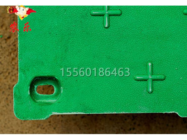 该产品是以不饱和树脂等为基体、轻质碳酸钙为填料,玻璃纤维增强,并添加多种添加剂及颜料等均匀混合而成的新型合成材料,经350吨及500吨压机机压成型,由于配方合理,工艺先进,易于成型及成型收缩率低,尺寸精度高,加工性能好等特点,使其产品其有良好的电绝缘性、阻燃性和机械强度,保温、散热性能好,可适用于各种消毒工作并且重量轻、平整光滑、不腐蚀、不老化、不伤脚、不伤奶头、安装方便、且设有防滑层,价格便宜等优点,是未来猪场***理想的漏缝地板。
